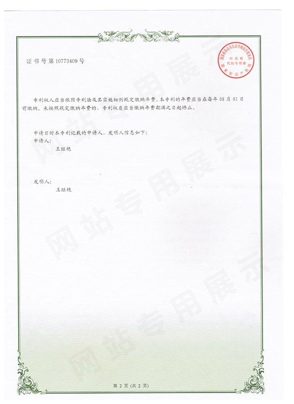 专利一种方向可调的新型太阳能热水器证书6-1